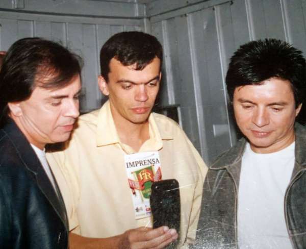 O repórter Sérgio Caparroz foi quem conduziu a entrevista, mas para mim, aquele momento foi o primeiro contato direto com um dos artistas que eu mais admirava. Pouco tempo depois, no mesmo rodeio, a dupla concedeu outra entrevista ao nosso time, e lá estava eu, vivendo o sonho de estar próximo deles.