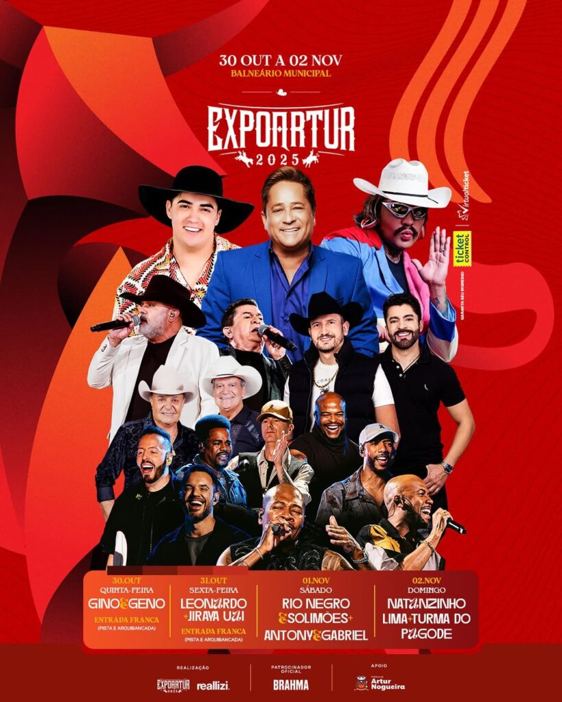 A Expo Artur 2025 será realizada entre os dias 30 de outubro e 2 de novembro, no Balneário Municipal de Artur Nogueira. O evento integra o calendário festivo da cidade e reúne apresentações musicais de diferentes gêneros.